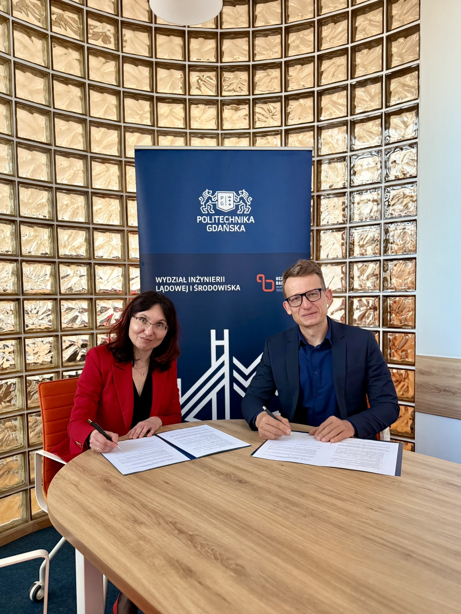 Po stronie Wydziału umowę podpisała Dziekan Wydziału Inżynierii Lądowej i Środowiska, prof. dr hab. inż. Ewa Wojciechowska. Ze strony Olivia Centre dokument podpisał Bogusław Wieczorek, radca prawny i pełnomocnik zarządu ds. public relations Olivia Centre.