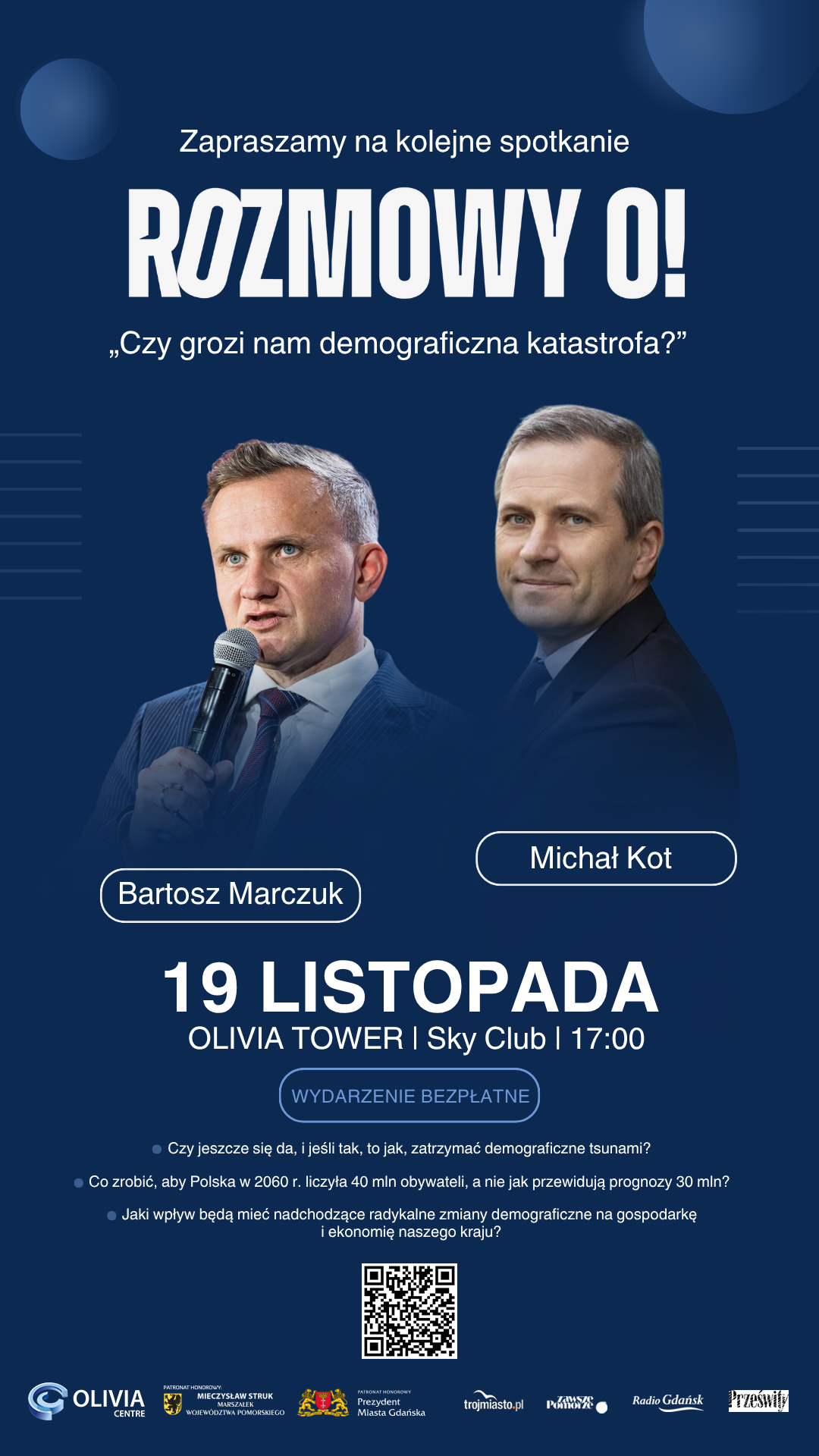 Zapraszamy na kolejne spotkanie cyklu Rozmowy O! Tym razem w Olivii gościć będziemy ekspertów od demografii – Bartosza Marczuka i Michała Kota.