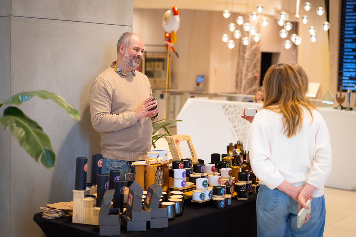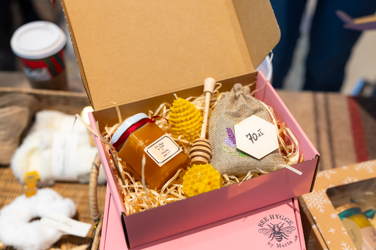 Na stoiskach czekały wyjątkowe, ręcznie tworzone ozdoby, pomysłowe prezenty, świąteczne dekoracje i drobiazgi, które od razu przyciągały uwagę. Każdy z wystawców wniósł coś od siebie — pasję, uśmiech i tę charakterystyczną grudniową uważność, dzięki której nawet najmniejszy przedmiot potrafi wywołać zachwyt.