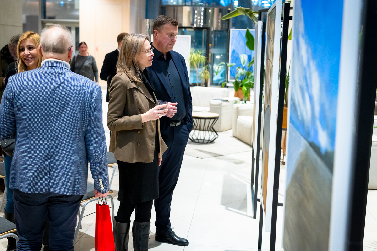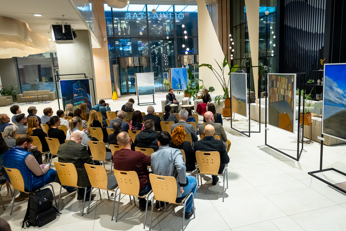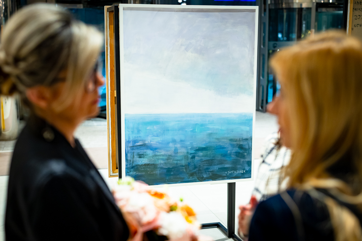 Wystawa „Między horyzontem a szkłem” powstała z jednego, prostego gestu: spojrzenia z wysokości. Z 32. piętra Olivia Star. Budynku, który sam w sobie jest opowieścią o nowoczesności, ambicji i świetle odbijającym się od szklanych fasad i z którego rozpościera się widok, którego nie można pomylić z żadnym innym. Tu Gdańsk pokazuje swoją pełnię: morze, lasy morenowe układające się w miękkie fale, zabudowę miasta i znak jego historii – żurawie. Z tej perspektywy człowiek stoi jakby pomiędzy światem materialnym, technologicznym, szklanym – a światem natury, przestrzeni, światła i milczącej obecności horyzontu.