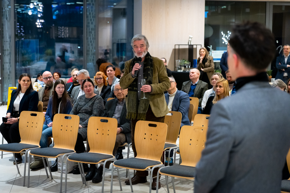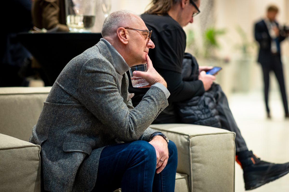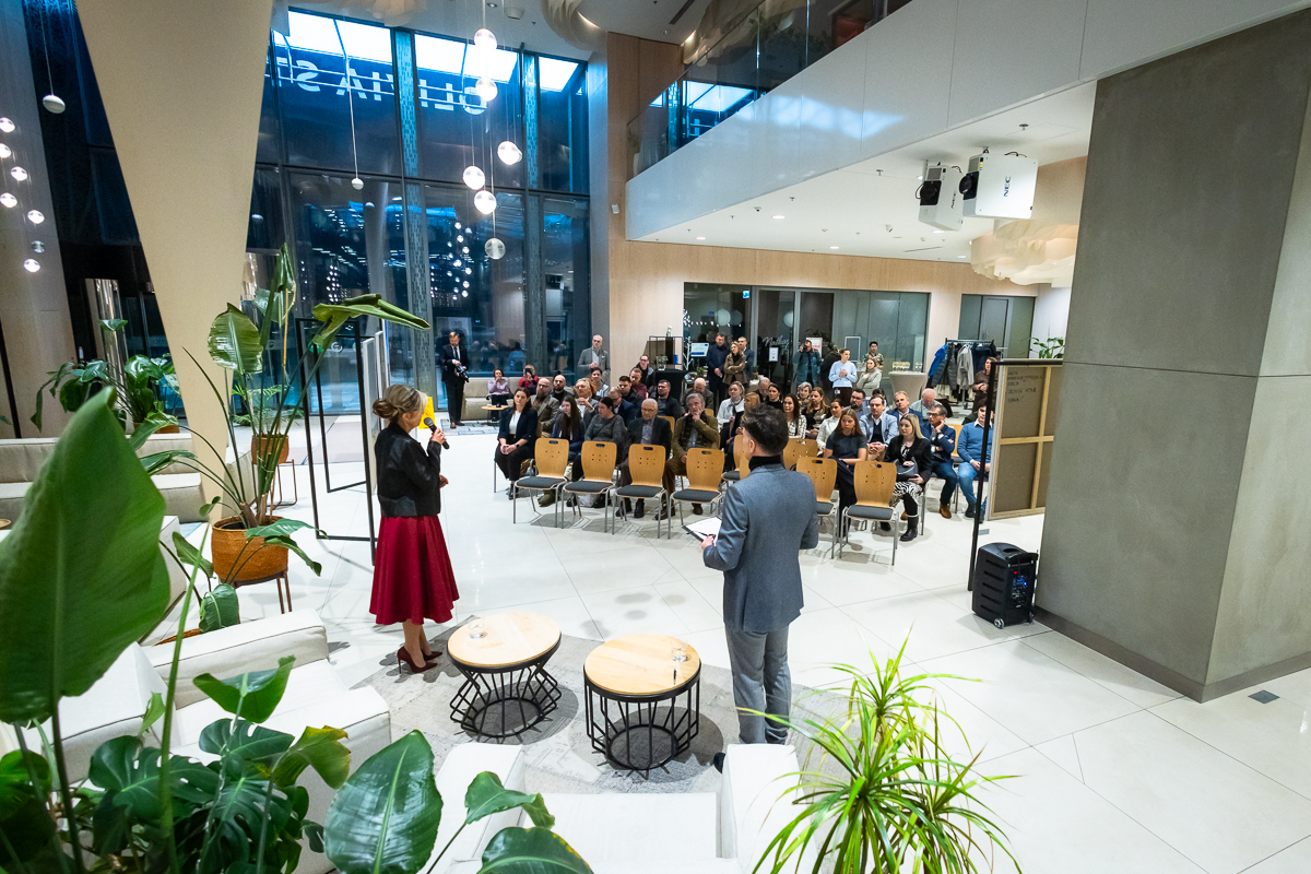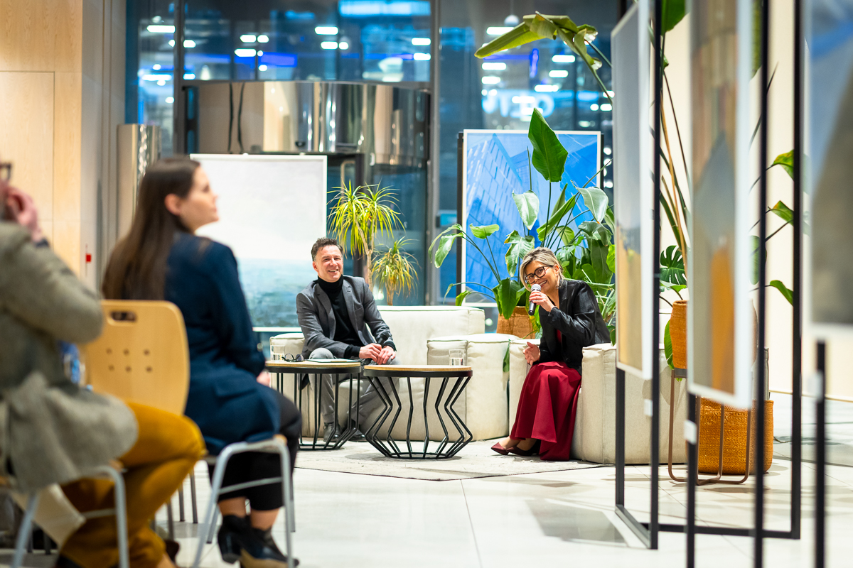 Wystawa „Między horyzontem a szkłem” powstała z jednego, prostego gestu: spojrzenia z wysokości. Z 32. piętra Olivia Star. Budynku, który sam w sobie jest opowieścią o nowoczesności, ambicji i świetle odbijającym się od szklanych fasad i z którego rozpościera się widok, którego nie można pomylić z żadnym innym. Tu Gdańsk pokazuje swoją pełnię: morze, lasy morenowe układające się w miękkie fale, zabudowę miasta i znak jego historii – żurawie. Z tej perspektywy człowiek stoi jakby pomiędzy światem materialnym, technologicznym, szklanym – a światem natury, przestrzeni, światła i milczącej obecności horyzontu.