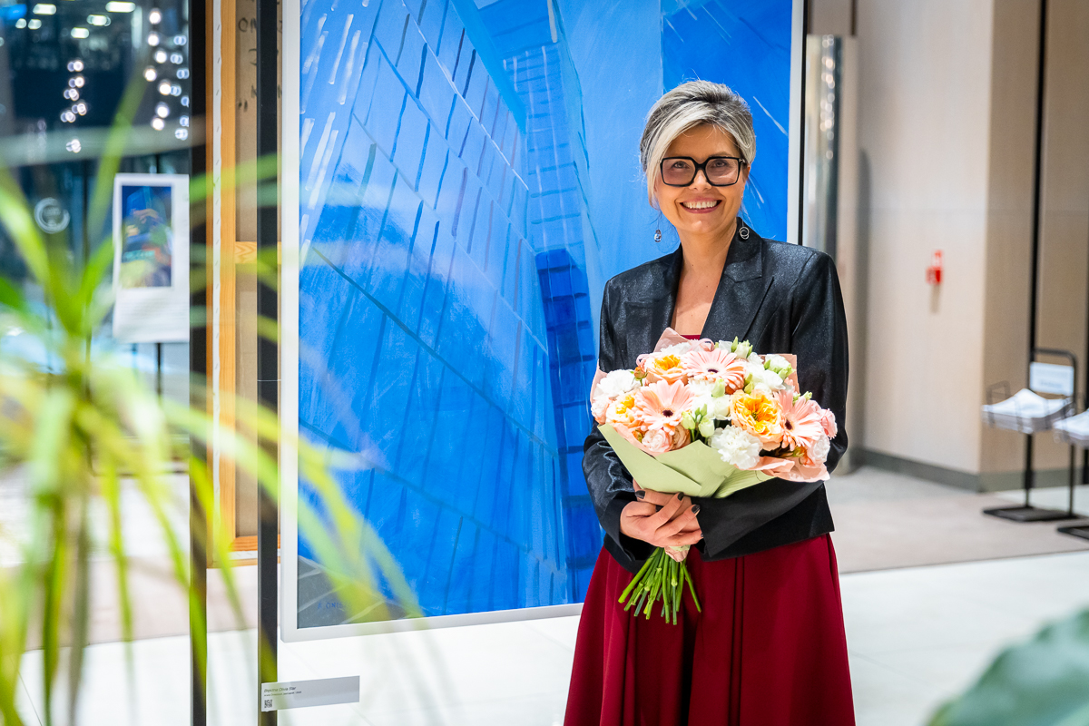 Obrazy „Olivia Star” oraz „Błękitna Olivia Star” wprowadzają widza w centrum nowoczesnego Gdańska. W tych pracach architektura jest jednocześnie obiektem i lustrem, strukturą, która odbija niebo i jednocześnie staje się jego częścią. To malarska interpretacja współczesnego pejzażu miejskiego.